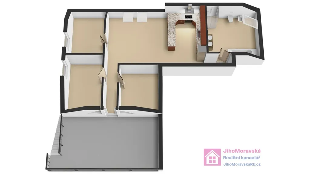 Zprostředkujeme Vám, ve výhradním zastoupení majitelky, pronájem bytové jednotky o velikosti 4+kk s terasou a parkovacím stáním, v Dobré Poli, nedaleko od vinařského města Mikulov.