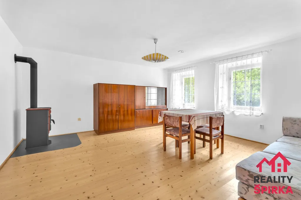 Jednotka 2+1 má útulnou kuchyň s krásnými kachlovými kamny, dvě prostorné místnosti, novou koupelnu, WC, spíž a místnost se sedačkou a výhledem do zeleně dvora. Nad tím vším se vznáší velká půda, ideální k dalšímu chalupářskému rozletu.