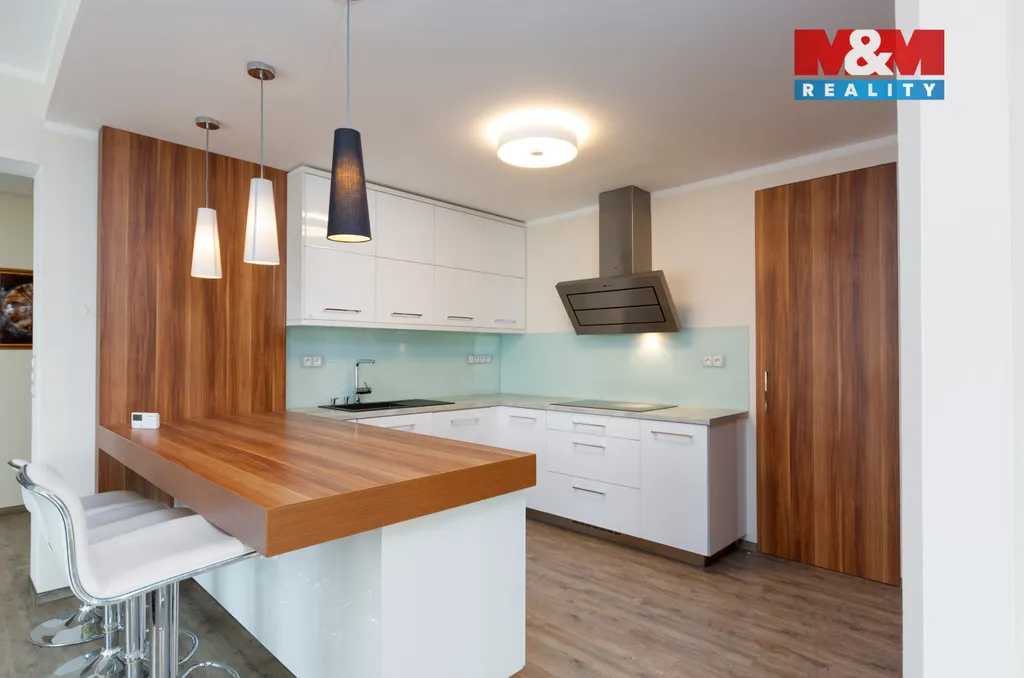 Nabízíme pronájem poloviny vily , která svým umístěním nabízí výjimečné výhledy do okolí a disponuje třemi bytovými jednotkami. Jedná se o luxusní atypický mezonetový byt 5+kk s terasou. Byt je kompletně vybaven, proto je vhodný i jako manažerské bydlení. V přízemí je kuchyň propojena s obývacím pokojem, se vstupem na velkou terasu s krásnými výhledy, WC, technická místnost, pokoj, ve 2.NP jsou 3 ložnice, 2 koupelny s WC. Byt je vybaven velmi nadstandardně včetně kuchyňské linky, s veškerými vestavěnými spotřebiči, u kuchyňské linky navíc komora, Vila má vlastní pozemek o velikosti 1 624 m2, který lze využívat i dostatek parkovacích míst. Byt má vlastní vstup do domu. Lze využít i sklepních prostor. Dům je vytápěn tepelným čerpadlem, v bytě je podlahové topení. Dům má úžasné umístění bez sousedů, přesto 4 min. pěšky hotel Zámeček pod Hradem, ZŠ, MŠ , sportoviště 7 min. pěšky, centrum obce 10 min. pěšky, autobusová doprava do všech okolních měst - Nový Jičín, Kopřivnice, Hranice.