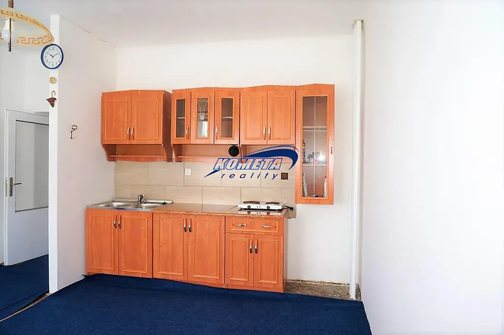 Nové plastové okno vč. žaluzií, kuchyňská linka, dvou plotýnkový vařič, byt je udržovaný.