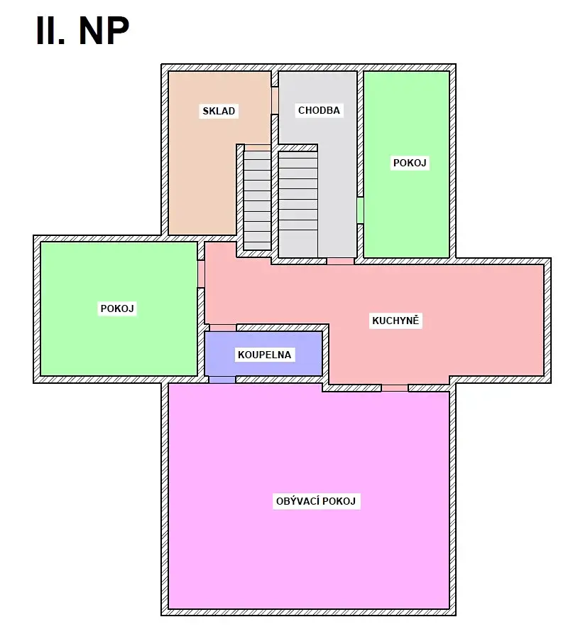 Druhé nadzemní podlaží je v současné době v rozestavěném stavu, avšak s velkým potenciálem. Jsou zde zhotoveny dělící příčky, buď zděné, nebo z SDK konstrukcí, a zhruba rozvedeny sítě po celém patře. Střešní plášť je zateplený a podlahu tvoří dřevěná prkna. Toto podlaží je tak při drobných úpravách připraveno k dokončení podle vašich představ.