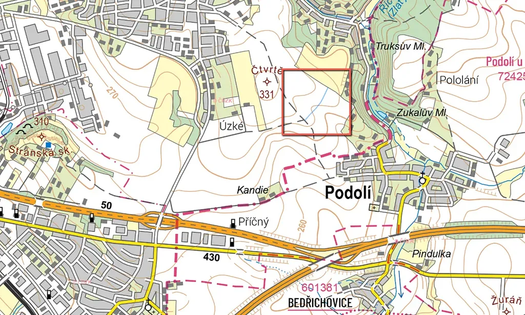 V kú Líšeň na LV 3801 se jedná o tento pozemek: