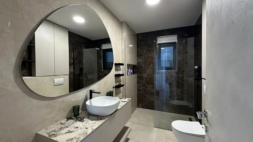 Nabízíme k prodeji luxusní byt v prémiové lokalitě, který nabízí nejen výjimečný komfort a design, ale také krásný, nezastavěný výhled na Jaderské moře. Byt se nachází ve 2. patře novostavby viladomu s celkem 4 byty. Má jihozápadní orientaci, obývací pokoj s jídelnou, kuchyní, chodbu, dvě ložnice, dvě kryté terasy, každá o výměře 14 m2 s úžasným výhledem na moře, 2 koupelny, 3 toalety, soukromou část zahrady o užitné ploše 44,50 m2 a 2 parkovací místa. Byt je vybaven luxusním nábytkem nejvyšší kvality, navrženo kompletně designerem od výběru obkladů, dlažby, sanitárií, dveří, osvětlení až po veškerý nábytek vyrobený na míru. V kuchyni a na ostrůvku je kámen Patagonie s podsvícením, krásný prvek bytu, který vynikne obzvlášť večer stejně jako spousta led osvětlení na dálkové ovládání s možností tlumení intenzity a dotváření atmosféry dle přání a nálady. Velkoformátová okna s roletami a sítěmi proti hmyzu, klimatizace v každém pokoji, podlahové topení v koupelně. Byt se nachází v jedné z nejžádanějších částí Dalmácie, jen pár metrů od moře, v klidné části Rogoznice, obklopený středomořskou zelení a okouzlujícími intimními plážemi. Na dosah ruky je také přístav Frapa, místní restaurace, kavárny a obchody. Ideální pro ty, kteří hledají hotovou luxusní nemovitost jak pro bydlení, tak pro turistické pronájmy se spaním až pro 8 osob.