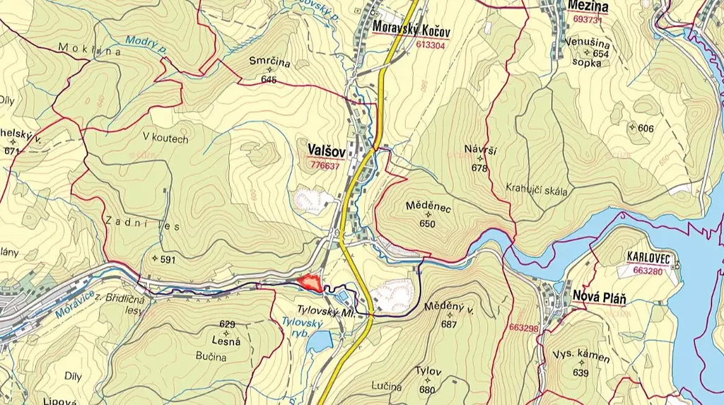 -> blízkost Tylovského rybníka a zatopeného Valšovského lomu
