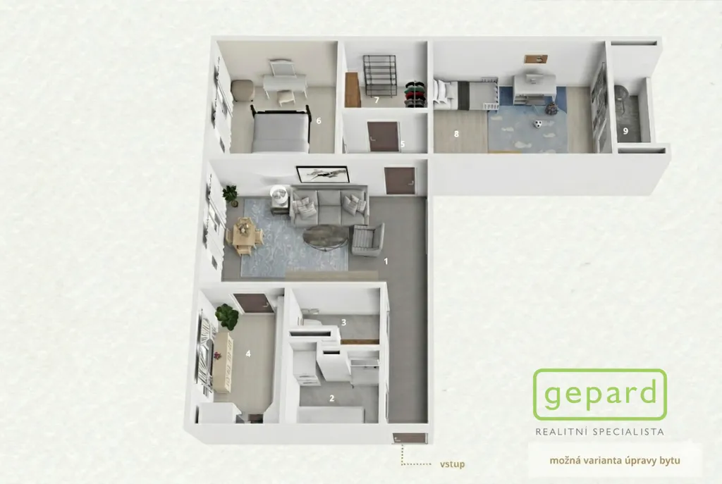Byt je velmi teplý a příjemný na bydlení po celý rok, díky své orientaci nabízí dostatek světla a komfort. Dispozice umožňuje úpravy dle vlastních představ, takže si jej můžete přizpůsobit přesně podle svých potřeb. Součástí bytu je lodžie ideální pro ranní kávu i sklepní kóje pro dostatek úložného prostoru.