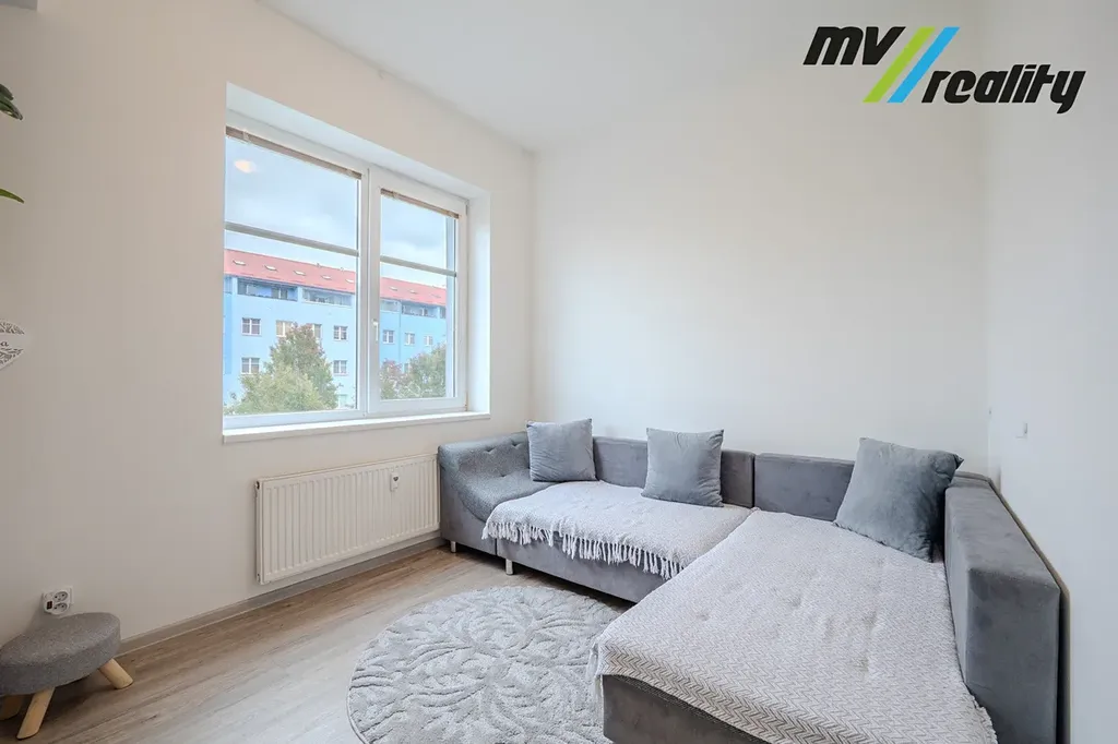 Dispozice bytu je původně 1+1, avšak díky chytře upravenému řešení působí jako 2+1.