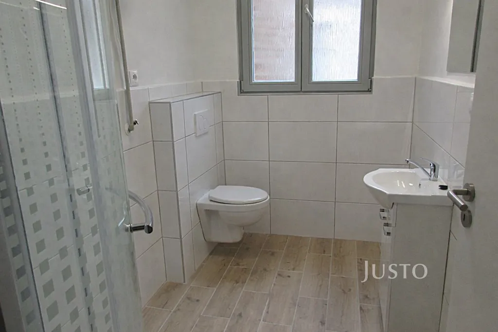 vlastní koupelna 5 m² se sprchovým koutem a závěsným WC zádveří 3 m²