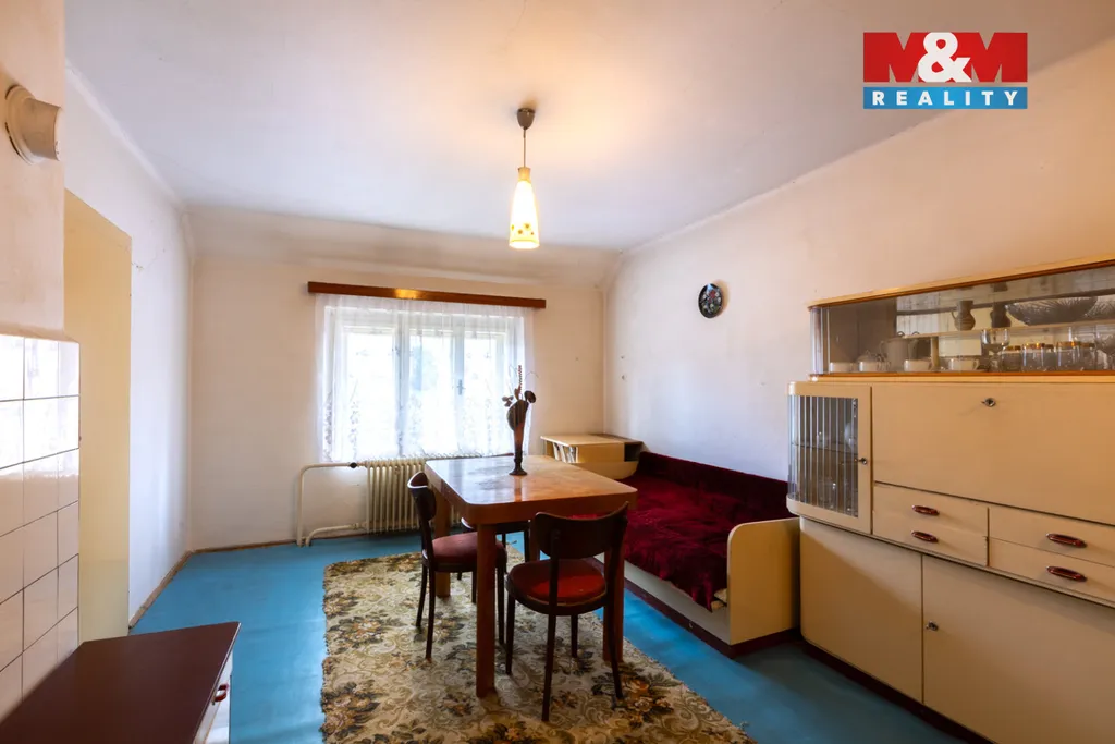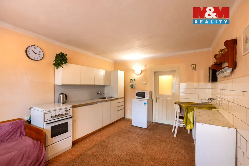 Nabízíme k prodeji dvougenerační rodinný dům v obci Domoušice, okres Louny. Nemovitost je v původním,ale udržovaném stavu, částečně již proběhly úpravy – v přízemí jsou plastová okna a dům je vytápěn tepelným čerpadlem. Dispozice tvoří dvě bytové jednotky 2+1 , kde v přízemí i v patře se nachází kuchyň a dva pokoje, koupelna je pouze v přízemí. Mimo obytný prostor je také technická místnost, dále je zde stodola a další přístavky. Po úpravě nádvoří se tento prostor nabízí pro vybudování bazénu a pergoly pro odpočinek. V obci je veškerá občanská vybavenost – obchod, školka, škola, kino i hospůdka. Aktivní společenský život zajišťuje místní Sokol a dobrovolný hasičský sbor. V lokalitě Podžbánsko s krásnou přírodou najdete přírodní a historické zajímavosti – např. zříceninu hradu Pravda, vrch Džbán nebo Kounovské kamenné řady. Pro prohlídku nás neváhejte kontaktovat.