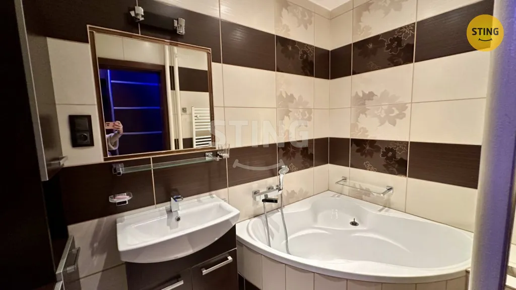 Součástí bytu je balkon o velikosti 1,6 m2 a sklepní kóje o výměře 4,04 m2. Koupelna je vybavena rohovou vanou, toaleta je samostatná.