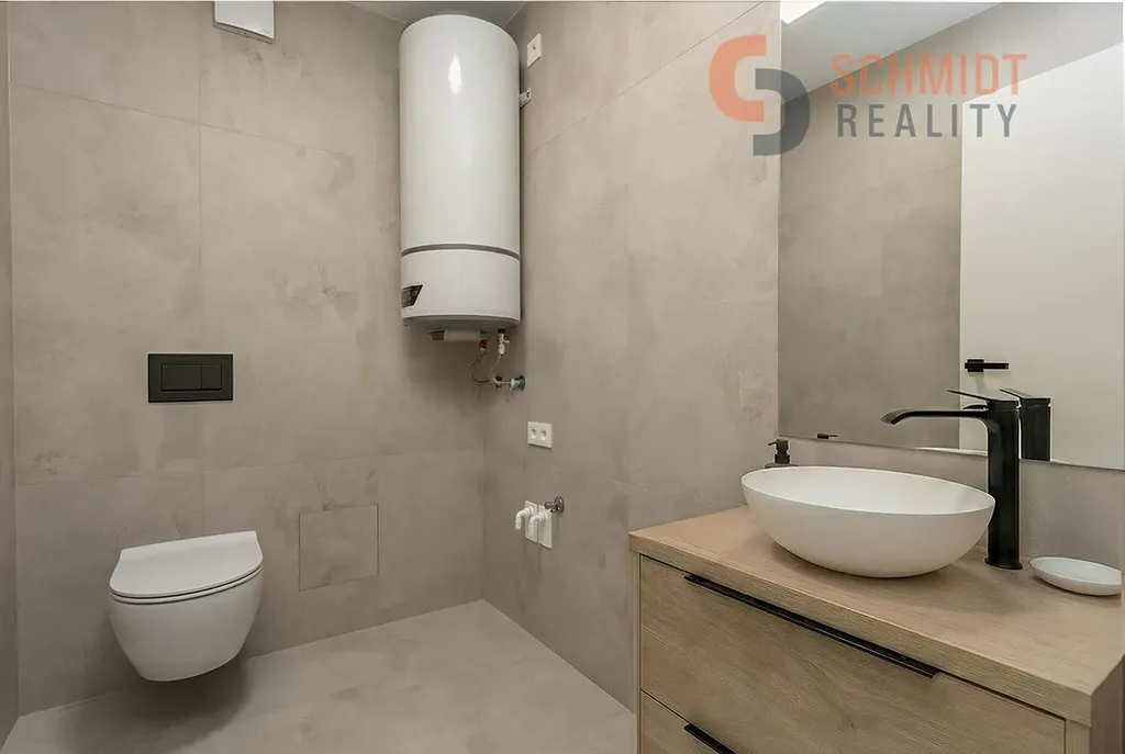 Koupelny jsou vybaveny velmi kvalitní sanitární keramikou a jsou osazeny sprchové podomítkové a umyvadlové baterie značky HANSGROHE.