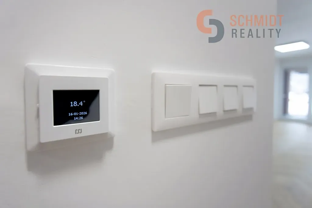 Nemovitost má podlahové vytápění, tepelné čerpadlo a klimatizaci. Dům je připraven na instalaci krbových kamen dle vlastního výběru, a to díky hotovému komínu - což umožňuje vytvořit si další zdroj nezávislého vytápění.