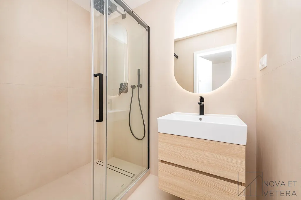 Byt právě prošel kompletní a kvalitní rekonstrukcí, která zahrnuje nové rozvody elektřiny, vody a odpadů, nové podlahy, moderní obklady a dlažbu značky Marazzi, koupelnu se sprchovým koutem se sanitou Grohe a také novou kuchyňskou linku se spotřebiči Gorenje s prodlouženou pětiletou zárukou.