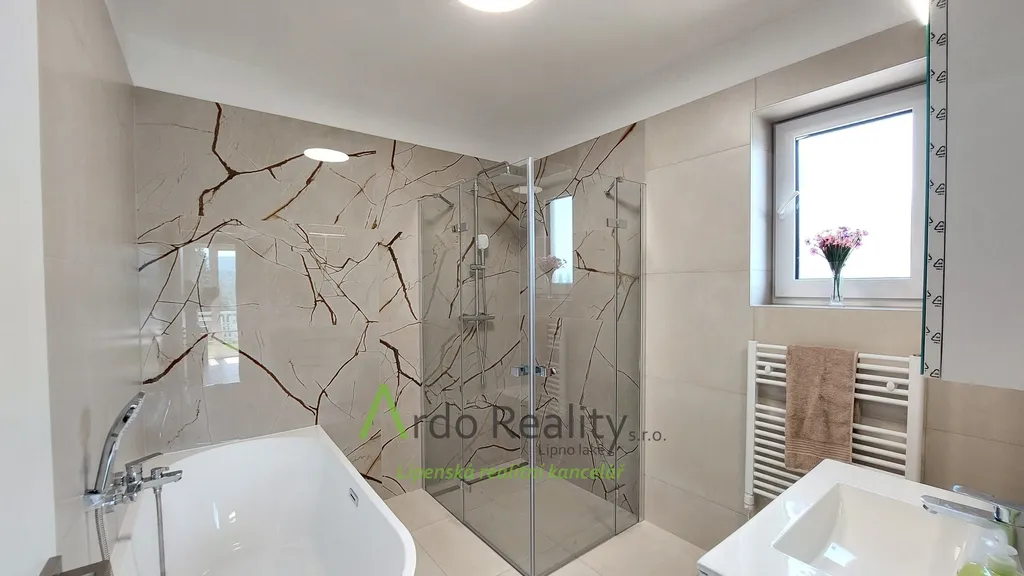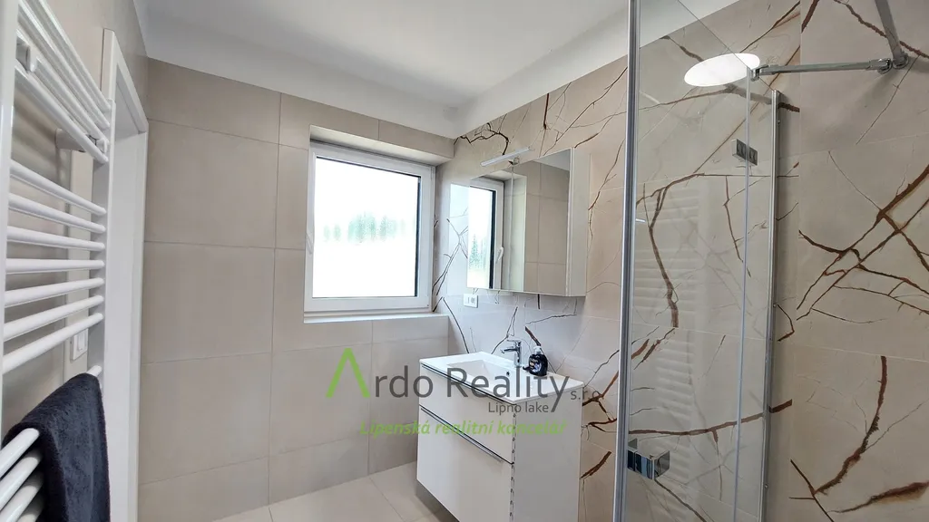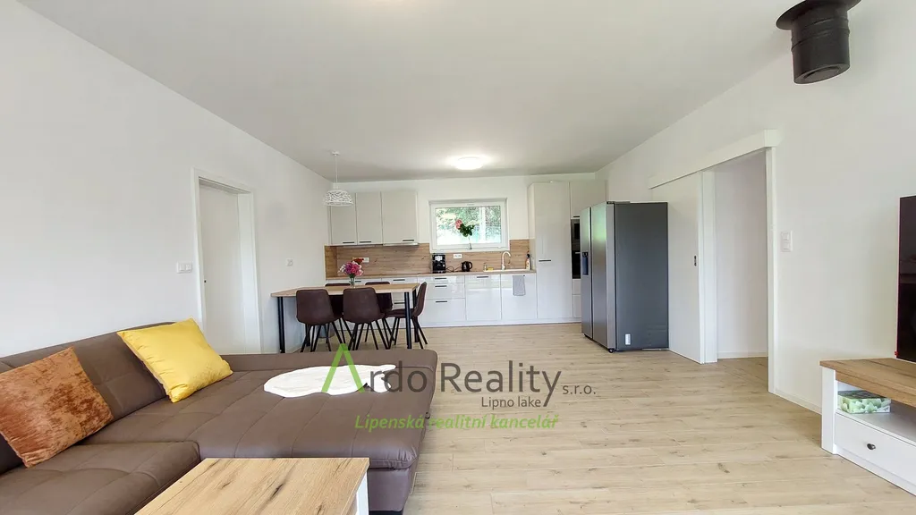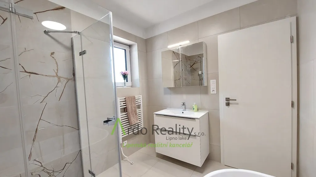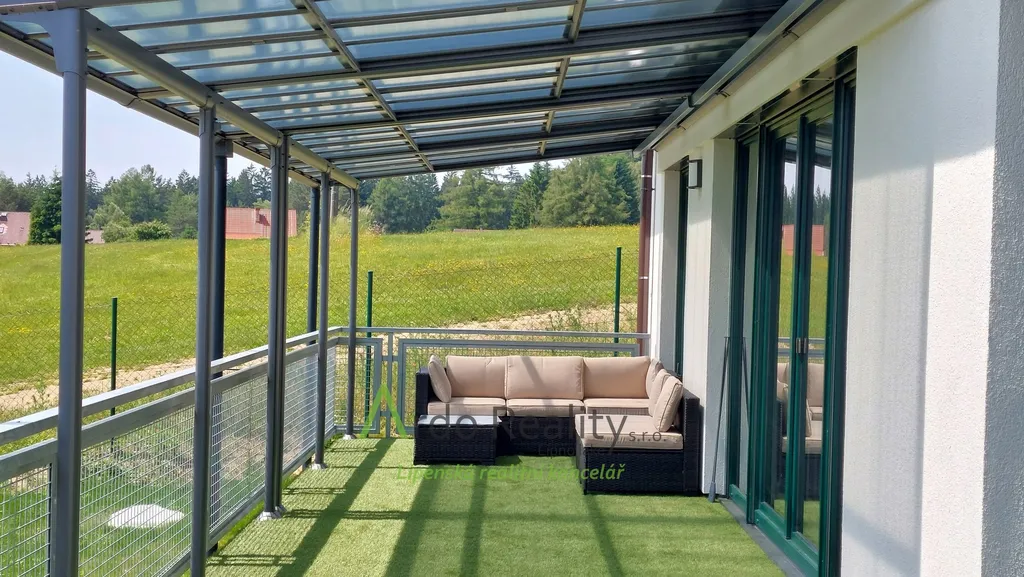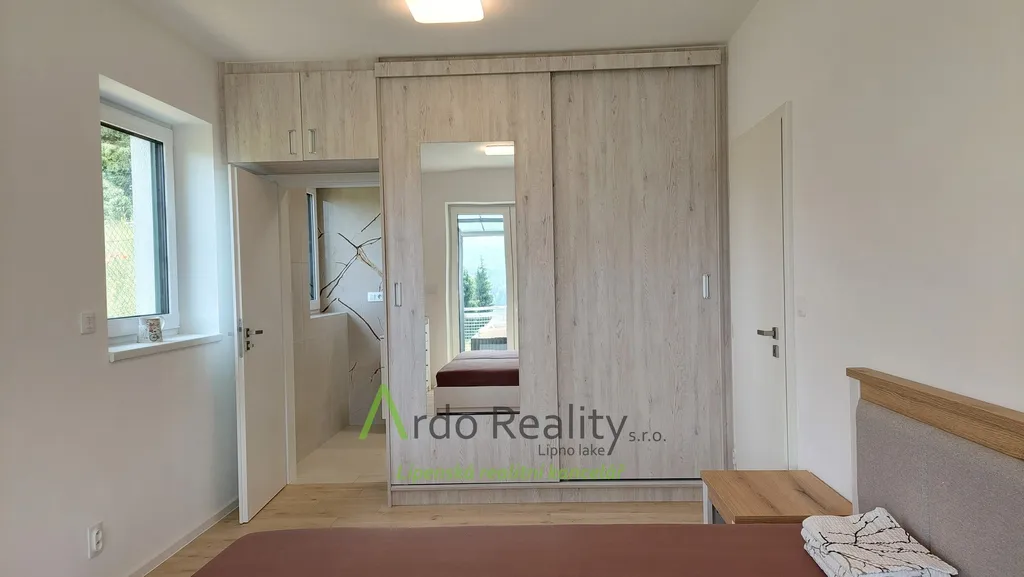 DLOUHODOBÝ PRONÁJEM na dobu určitou 5 let nebo dle dohody, s cílem udělat nájemcům radost, aby přijali a užívali celý dům i s pozemkem jako opravdoví vlastníci. Právě byla dokončena stavba nadstandardních šesti stejných domů u lázeňského městyse Frymburk, téměř na břehu Lipenského jezera. Prezentujeme zde bezbariérový bungalov, který je situován tak, aby prostorná terasa byla orientována jižně, s výhledem na jezero. Tento majitelé vybavili, ten Vám předkládáme jako vzorový a ten se bude pronajímat tedy jako poslední. Domy byly postaveny za použití nejmodernějších technologií, jsou energeticky velmi úsporné, vytápěné německým tepelným čerpadlem Viessman vzduch-voda, s podlahovým topením v celém domě. V obývacím pokoji se nachází ale i komín jako příprava pro krbová kamna nebo krb. Stavba je zděné konstrukce Porotherm 30 cm, zdi jsou izolovány 15 cm polystyrénem, stropní izolace je 18 cm, okna jsou trojitě zasklená a před všemi jsou instalovány rolety s elektrickým ovládáním. Střecha je valbové konstrukce a krytina keramická německého výrobce Roben. Půda je přístupná po skládacím schodišti. Dispozičně je dům řešen takto: Ložnice rodičů, která má k dispozici vlastní koupelnu se sprchovým koutem a WC s bidetovým mechanizmem, dále prostorný obývací pokoj s vybavenou kuchyní Schüller, jejíž pracovní deska se dřezem Blanco, se skříňkami a spotřebiči Elektrolux zabírá celou délku místnosti. Je provedena příprava napojení vody a elektro na americkou lednici s výrobníkem ledu. V tomto pokoji je právě možnost nainstalovat jednoduše krbová kamna a tak si zajistit ve studených dnech příjemnou atmosféru. V druhé části domu jsou další dva pokoje, z nichž lze rovněž vyjít na prosluněnou terasu. Na konci chodby je pak samostatné WC s malým umyvadlem a poslední, ale neméně důležitou místností je parádní koupelna s volně stojící vanou, sprchovým koutem a umyvadlem. Před hlavními vstupními dveřmi je ochranné zádveří, kde je venkovní jednotka TČ a také provedena příprava elektro na možnost instalace nabíjecí stanice pro automobil, z něhož je teprve vstup do domu. Zde je úschovný prostor, je tu místo na velkou odkládací skříň a je odtud vstup do technické místnosti. Ta může také skrývat další pohodlnou skříň pro ukládání potřebných věcí, hlavně je zde vnitřní jednotka tepelného čerpadla, dále pak tlaková nádrž s ovládáním čerpání vody a také moderní úpravna vody Watex, která zajistí tu nejkvalitnější pitnou vodu. Zbývá zde ještě dost místa pro pračku a sušičku. Největší devizou tohoto domu je velká venkovní terasa cca 40 m2 s krásným výhledem, která je ze dvou třetin krytá variabilní odsouvací střechou. Tato terasa je propojena se všemi obytnými místnostmi domu. Dešťová voda je svedena do podzemní retenční nádrže o obsahu 4000 litrů s možným využitím k zalévání. Parkování je řešeno pro dvě auta na vlastním pozemku u domu. Každý dům má své vlastní zabezpečovací zařízení Jablotron, napojené na pult ochrany s výjezdem. Připojení internetu zajišťuje společnost Starnet. Jak jsme již zmínili, na fotografiích vidíte vybavený vzorový dům. K pronájmu je připraveno ostatních pět plně dokončených domů, které po dohodě můžete mít zařízeny stejně, obdobně, anebo si je můžete zařídit nábytkem dle svých představ. Celý oplocený areál je v mírném svahu pod lesem, v okolí je krásná čistá příroda. Relaxovat se dá v letním období, vodními sporty, cykloturistikou kolem přehrady, houbaření a výšlapy po šumavské přírodě. V zimním období se nabízí běžkování a sjezdové lyžování na Lipně, v Rakousku a Německu. K břehu Lipenského jezera dojdete pěšky za méně než 5 minut, Český Krumlov je vzdálen 30 km, České Budějovice 55 km, přívozem přes vodu na hraniční přechod do Rakouska Guglwald asi 15 km. Další podrobnosti Vám rádi sdělíme při osobním jednání. Tato chatová osada je vzdálena jen 10 minut jízdy od lázeňského městysu Frymburk. Frymburk získal tento status v loňském roce a v brzké době zde lázně opravdu vyrostou.