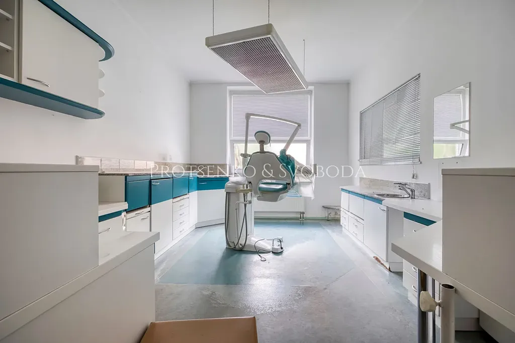 • Přízemí (cca 130 m²) – aktuálně vybaveno jako privátní zubní klinika (čekárna, 3 ordinace, laboratoř, sklady)