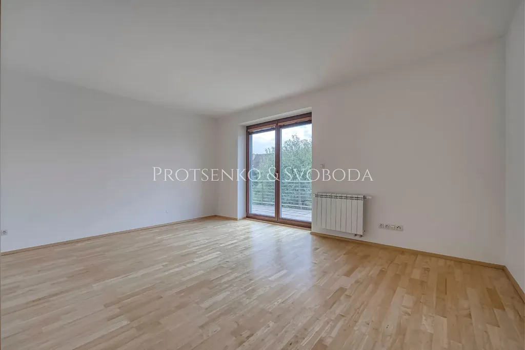 Tři prostorné pokoje (ve dvou jsou vestavěné skříně), samostatná šatna/pracovna a velká koupelna s rohovou vanou, sprchovým koutem, dvěma umyvadly, WC a bidetem. Podlahy jsou plovoucí dřevěné, vytápění je zajištěno hliníkovými radiátory. Z chodby je vstup na střešní terasu (65 m²), která navazuje na balkon (21 m²) orientovaný na jih.