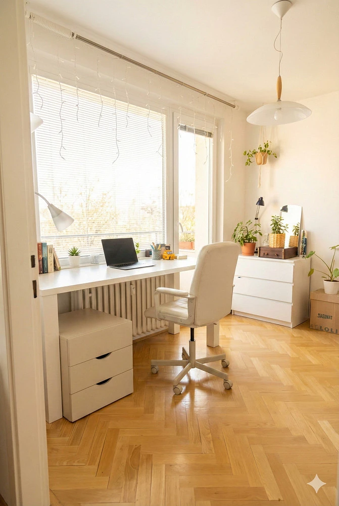 Fotografie byly digitálně upraveny za účelem odstranění osobních věcí a vizuálního nepořádku (digitální homestaging).