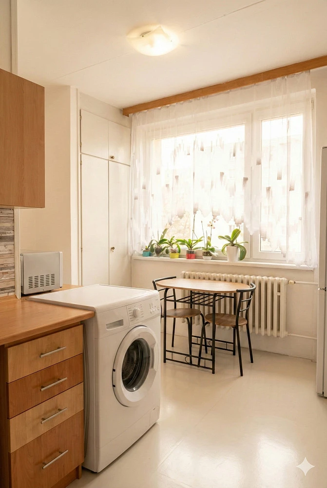 Dispozice 3+1 zahrnuje tři samostatné pokoje, které poskytují dostatečné soukromí a prostor pro celou rodinu. Kuchyně je vybavena oknem, které přináší do bytu příjemné světlo a výhled do okolí. Byt je v udržovaném stavu, což nabízí příležitost k vlastním úpravám a přizpůsobení interiéru podle individuálních potřeb.