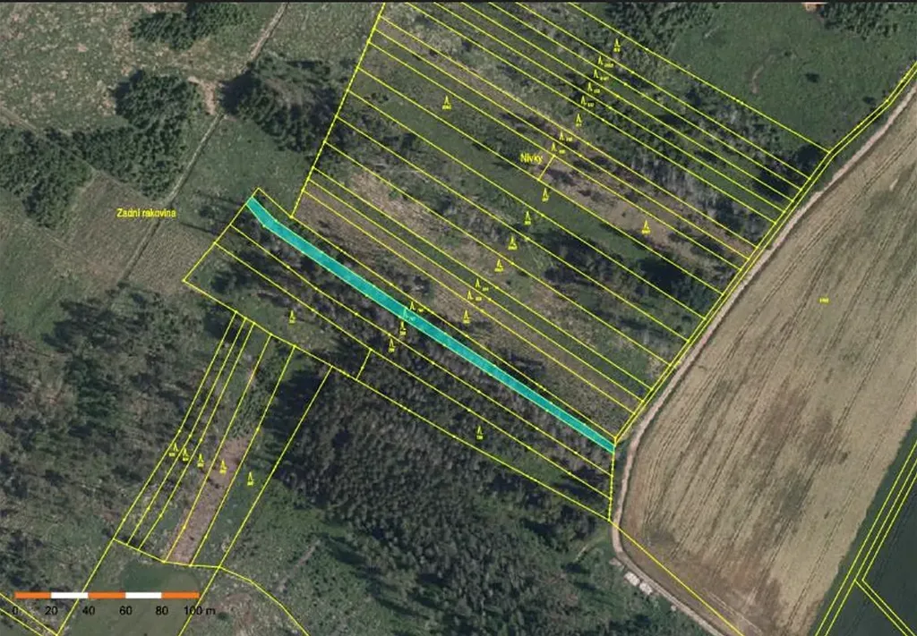 Jedná se o prodej lesních pozemků menší výměry, většinou úzkého protáhlého tvaru, rozptýlených po komplexu lesů v k.ú. Dolní Vilémovice. Na pozemcích se nachází mýtní porost BO, porost na pozemku parc. č. 787 byl vytěžen.