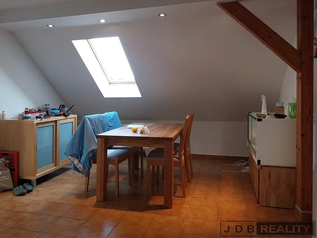Nabízíme k pronájmu jednu ze dvou bytových jednotek o velikosti 103 m² a dispozici 4+kk v rodinném domě v centru Roztok u Prahy. Dům se sedlovou střechou z roku 2000 se nachází na pozemku o celkové výměře 622 m². Do bytové jednotky je přístup po vnějším schodišti, což zaručuje absolutní soukromí. Bytová jednotka disponuje kuchyní s jídelním koutem a kuchyňskou linkou s elektrickým sporákem, troubou a myčkou, velkým obývacím pokojem, koupelnou s vanou a wc, dalším samostatným wc, dalšími dvěma pokoji a šatnou (komorou). Vzhledem k dostatečnému množství střešních oken je celý byt velice dobře prosvětlen.