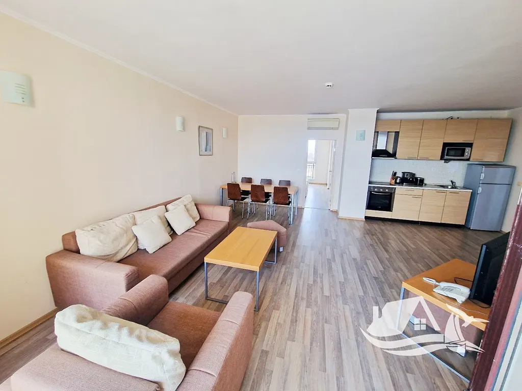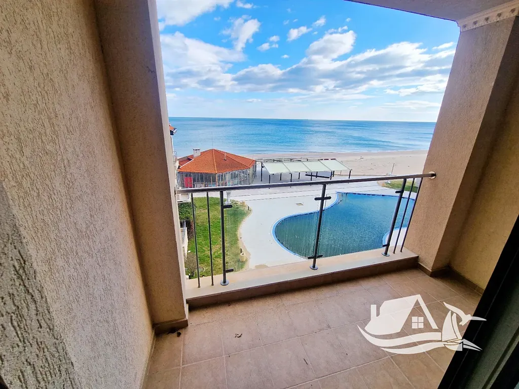 Apartmán se nachází ve čtvrtém podlaží moderního komplexu s výtahem, přímo na pláži. Je to bydlení, které se neomezuje na interiér – tady se žije mezi mořem a horami, světlem a prostorem. Z obývacího pokoje a hlavního balkonu se otevírá přímá, ničím nerušená panoramatická mořská scenérie, zatímco z ložnic a druhého balkonu se díváte směrem k horám. Kombinace, která je na bulharském pobřeží vzácná.