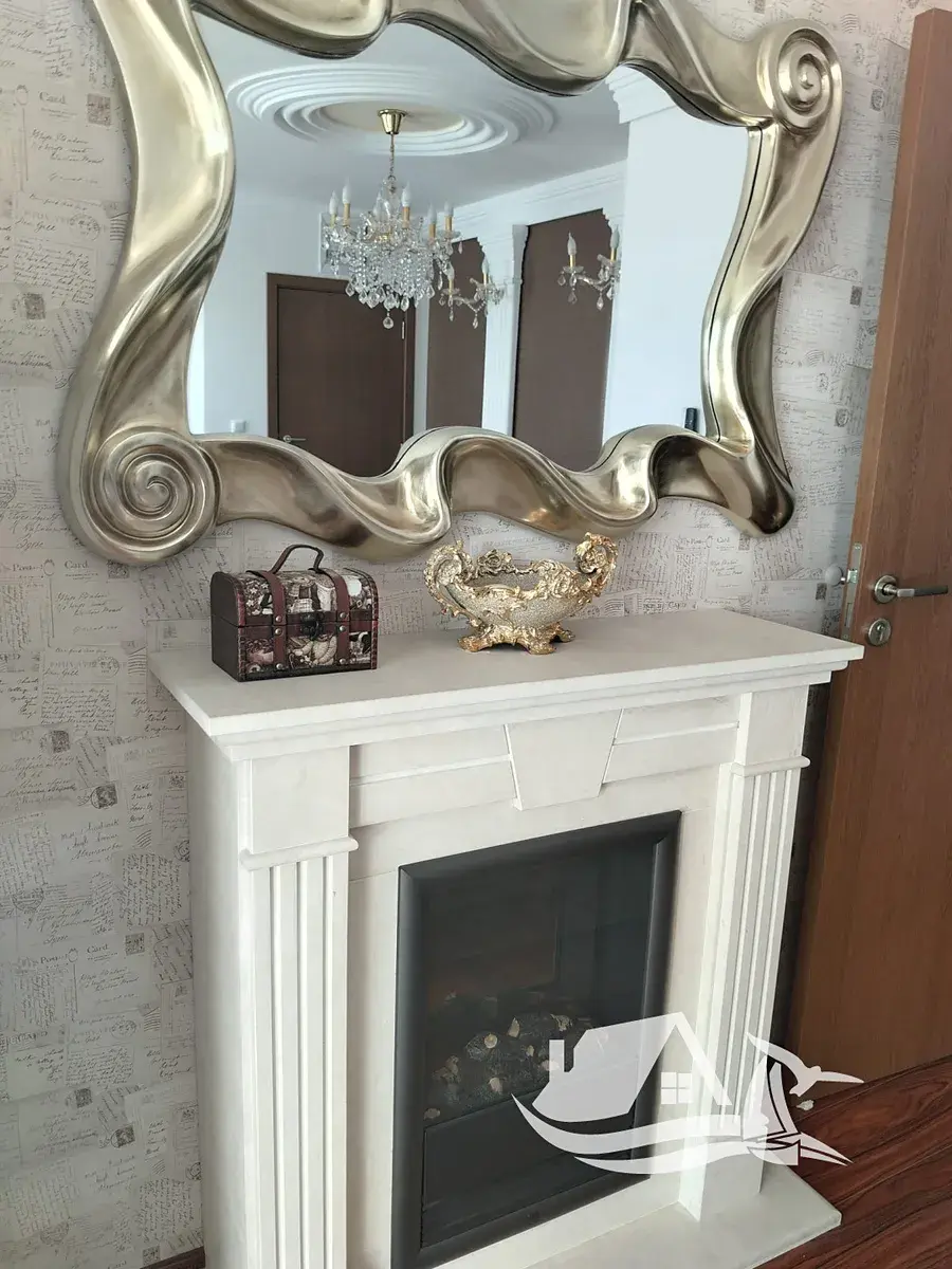 prostorný obývací pokoj s krbem, který vytváří elegantní a útulnou atmosféru