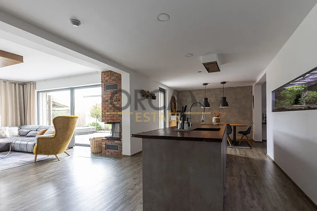 Celá nemovitost je pojata v moderním a nadčasovém stylu a zcela určitě splňuje požadavky současného moderního bydlení.