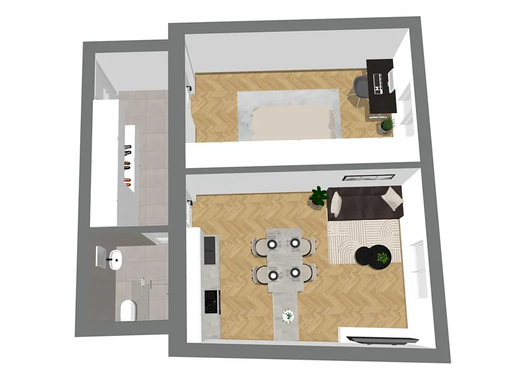 Komfortní je i dispozice bytu, kde oba pokoje jsou neprůchozí a díky jihozápadní orientaci je byt velice světlý. Atmosféru dotváří vysoké stropy, špaletová okna, dubové parketové podlahy v pokojích, kvalitní dlažba v předsíni a koupelně. Celkově byt působí příjemným a kompaktním dojmem, je ve výborném stavu a připraven k nastěhování bez nutnosti dalších úprav.