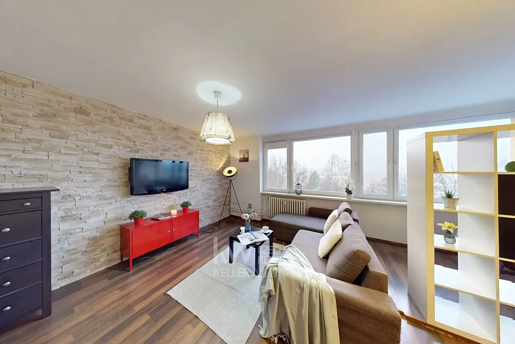 Lokalita a panoramatický výhled: Z velkých, téměř panoramatických oken se otevírá krásný výhled do zeleně. Velkou výhodou je stabilita lokality – přímo před domem již nic nevyroste, takže o svůj výhled ani soukromí nepřijdete. V docházkové vzdálenosti jsou školy, školky, parky i poliklinika.