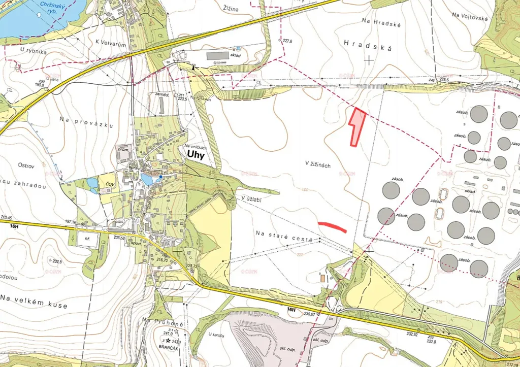 V katastrálním území Uhy, okres Kladno, nabízíme k prodeji dva zemědělské pozemky ve stoprocentním vlastnictví. Pozemky jsou zapsány na listu vlastnictví č. 670 a nacházejí se v přehledné, rovinaté části katastru, která je vhodná pro efektivní zemědělské využití.