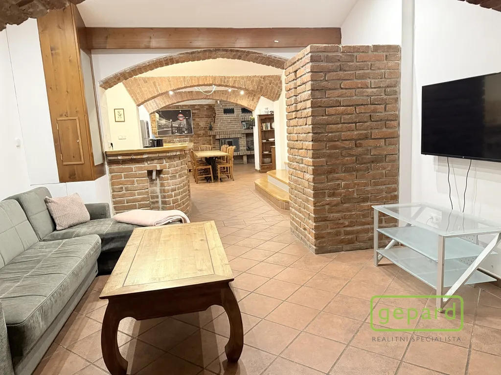Zachované historické klenby dodávají prostoru neopakovatelný charakter, eleganci a nadčasovou atmosféru, kterou v chladnějších dnech ještě umocní funkční krb, ve kterém je možné si zatopit a vytvořit příjemné, útulné prostředí.