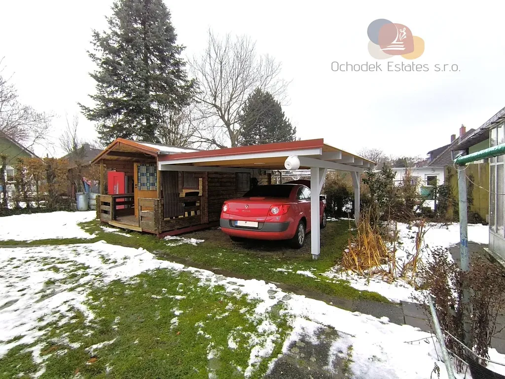 - zahrada s novým přístřeškem na auto, zahradní chata na nářadí, 3 dlážděná parkovací stání