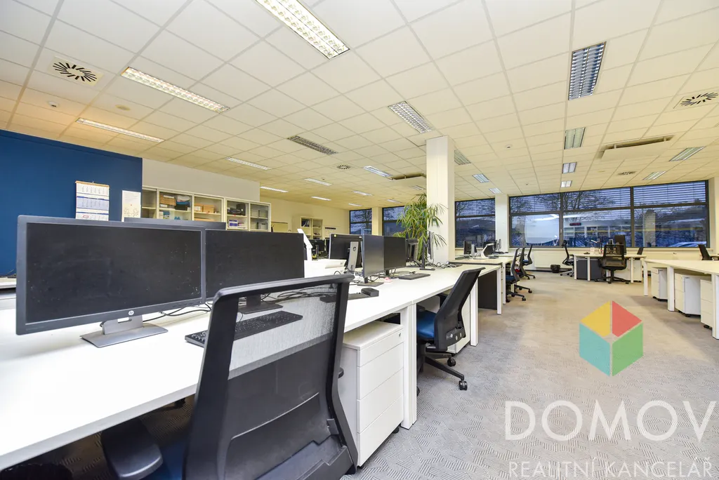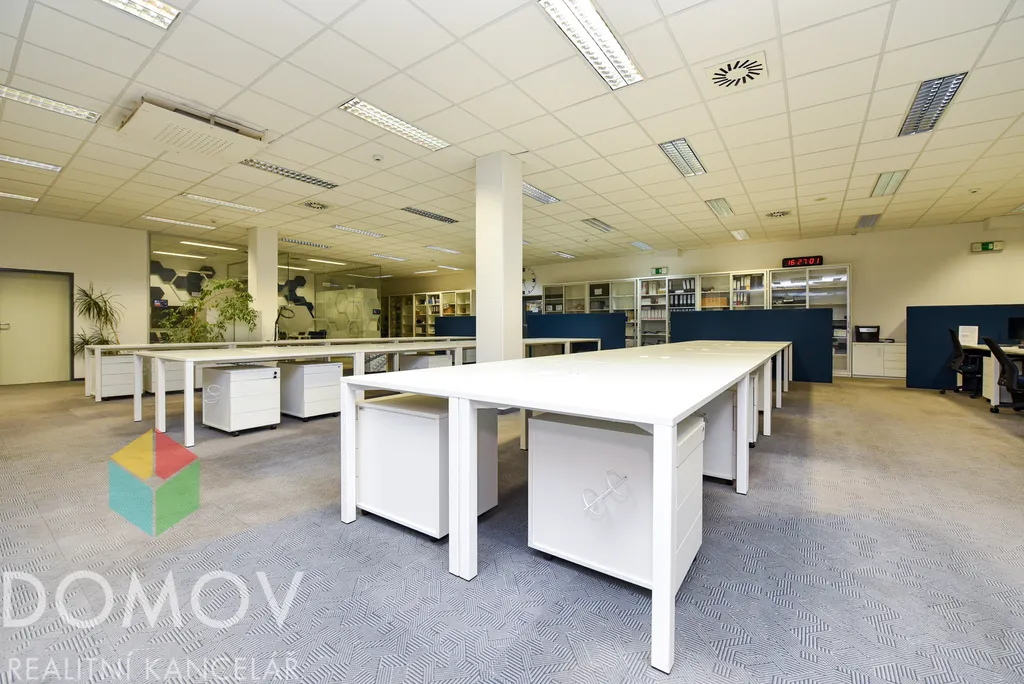 Prostory se nacházejí v 1. nadzemním podlaží budovy a jsou kompletně zařízeny pracovními stoly a kancelářskými židlemi, což umožňuje okamžité zahájení provozu bez nutnosti dalších investic.