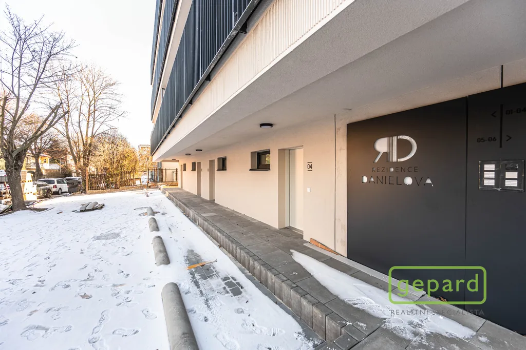 Nabízíme k pronájmu atraktivní byt v novostavbě o dispozici 1+kk se sklepem v přízemí domu, nacházející se na adrese Danielova, v klidné části obce Čakovice, Praha 9.