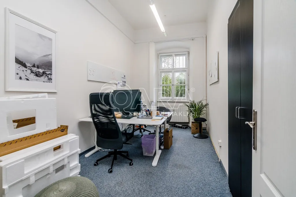 Kancelář vznikla v novobarokní budově, jejiíž historie sahá do 13. století, respektive 17. století, kdy byla přestavena z tvrze na zámek. Prostory disponují 10-ti samostatnými kancelářemi, které lze však vzájemně procházet, tudíž můžete firemní tým efektivně rozmístit, tak aby jednotlivá oddělení mohla mezi sebou efektivně komunikovat a spolupracovat, viz přiložený půdorys v inzerci. Dále je k dispozici malá místnost přístupná z haly, sloužící jako serverovna. Kuchyňka je mezi kancelářemi. Přístupná je velká terasa, kterou mohou nájemníci využívat k odpočinku, ale třeba i ke kancelářské práci na čerstvém vzduchu. V rámci nájmu můžete v areálu zámku parkovat až 6 automobilů.