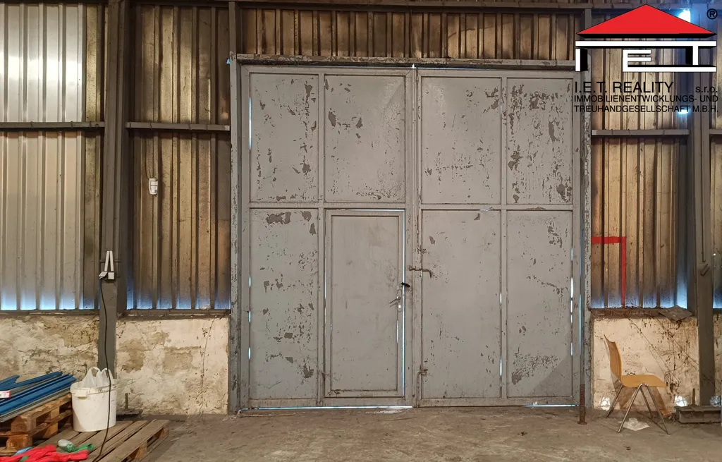 Hala je přístupná 2 vraty (dvoukřídlé) s možností parkování strojů před halou.