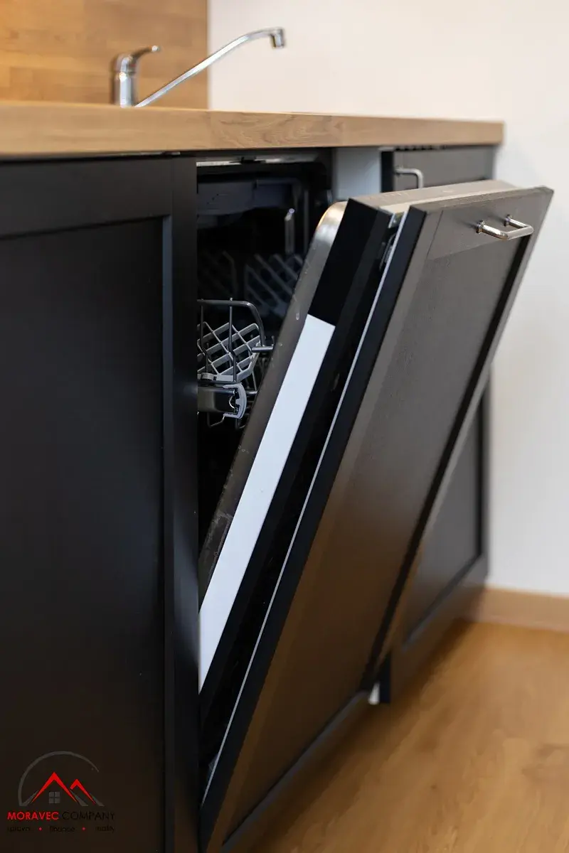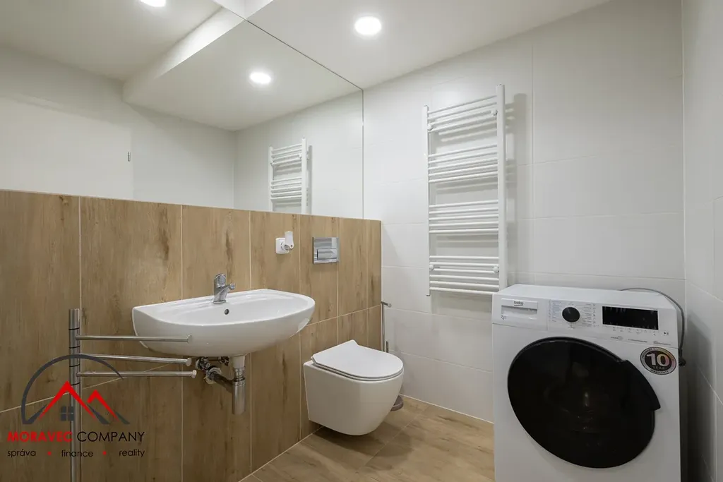 Byt je plně vybaven – nechybí nábytek, spotřebiče, nádobí. Stačí si jen přinést osobní věci a můžete bydlet!