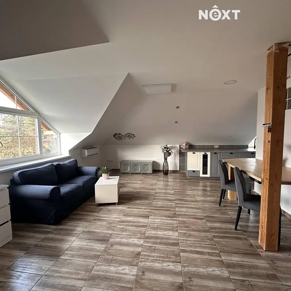 Nabízím pronájem velmi pěkného a udržovaného bytu 1+kk o velikosti 66 m², který se nachází v 1. patře (podkroví) novostavby rodinného domu v malé a klidné obci Hradce, jen 13 km od Českých Budějovic.