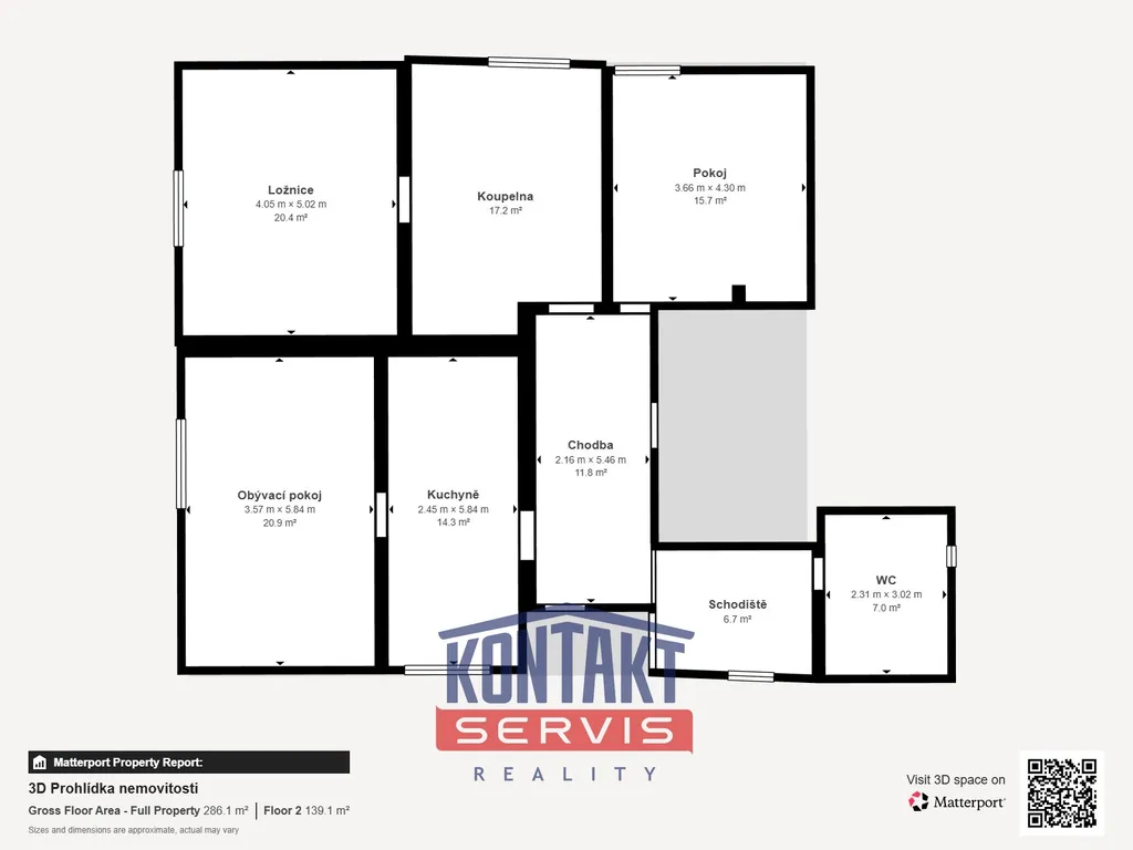 Nemovitost stojí na pozemku o celkové výměře 587 m², zastavěná plocha činí 243 m² a zahrada má rozlohu 311 m². Současná obytná plocha činí 286 m².