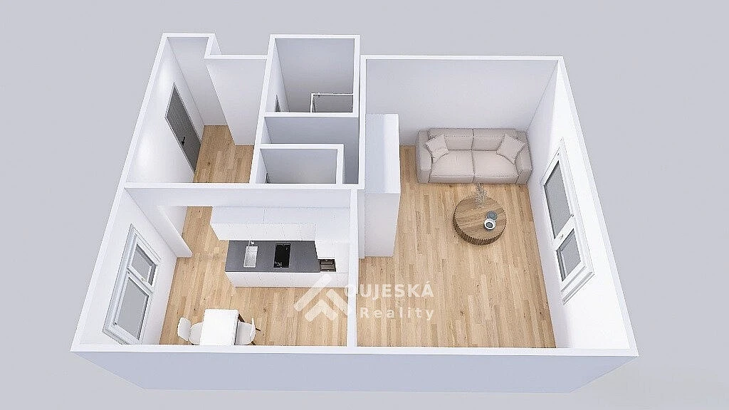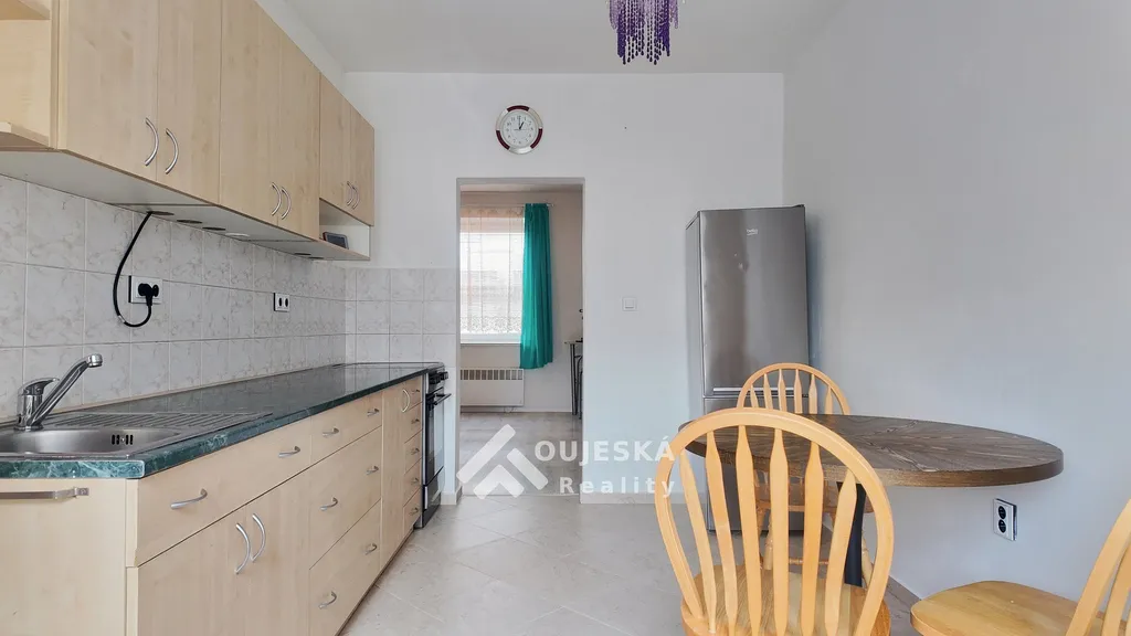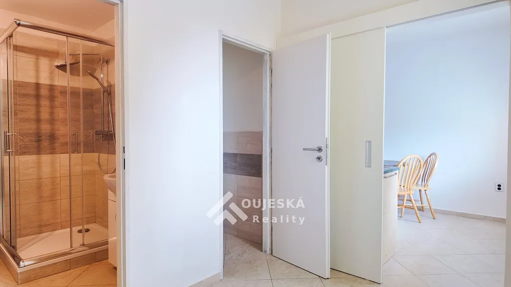 Byt o velikosti 46 m² se nachází v přízemí cihlového domu. Nabízí pohodlný obývací pokoj, kuchyňský kout, koupelnu se sprchovým koutem a samostatné WC.