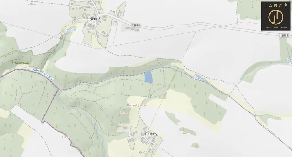 Pozemek (923) je přístupný z obce Petříny po zpevněné komunikaci. Pozemek je mírně svažitý od hranice vodního toku. Je možné ho využít pro individuální rekreaci nebo stavbu včelína nebo stavbu k funkci lesa. Je možné ho oplotit na zajištění porostu.