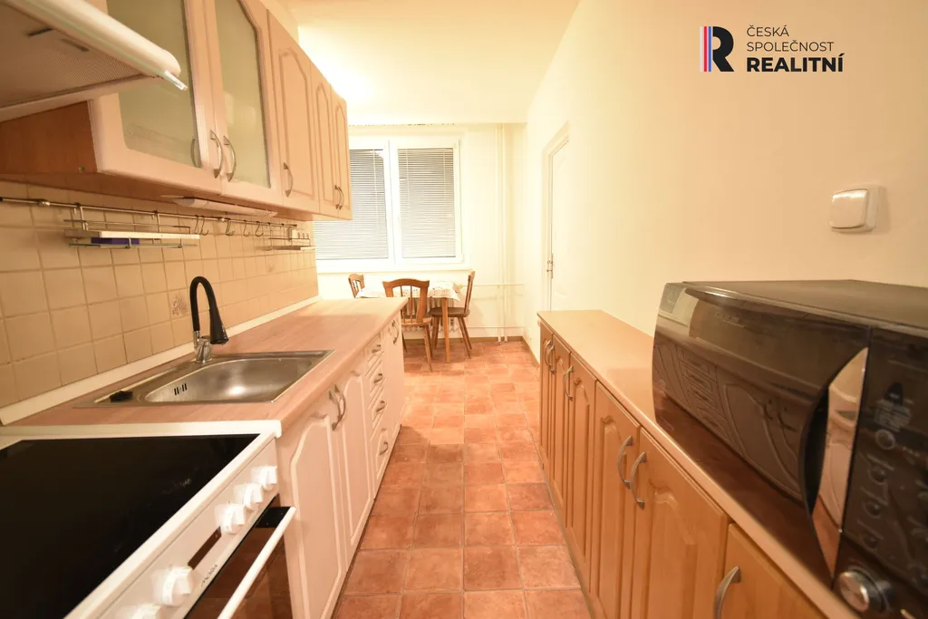 Pohodlí bytu tvoří tři samostatné pokoje s plně zařízenou kuchyňskou linkou (sklokeramický sporák s troubou, digestoř, mikrovlnka), koupelna se sprchovým koutem, pračka, komora, samostatné WC.