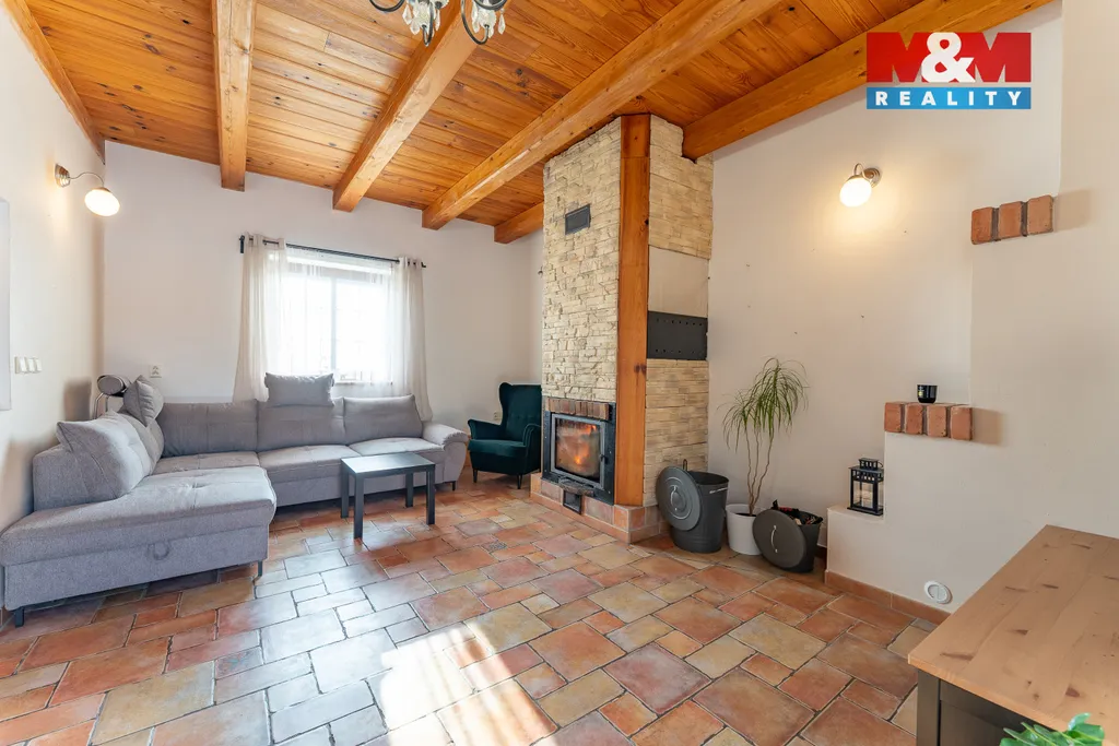 Rodinný dům z roku 2012 je promyšlený do posledního detailu a ideální pro pohodový rodinný život. V přízemí s podlahovým vytápěním naleznete plně vybavenou kuchyň s jídelnou, praktickou komoru, koupelnu s toaletou a světlý obývací pokoj s majestátným krbem. Interiér působí útulně díky kombinaci dřeva, bílé barvy a kamene.