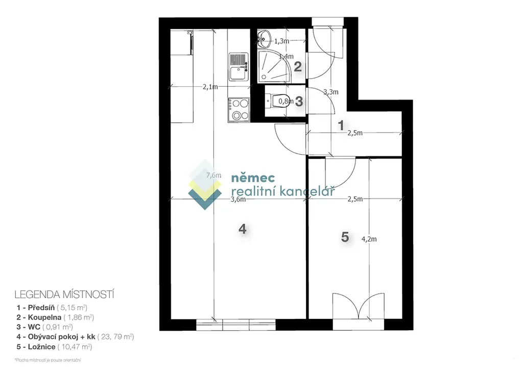 Tato nemovitost o celkové ploše 45,18 m² (42,18 m² byt + cca 3 m² sklep) je připravená k okamžitému nastěhování a nabízí skvělé bydlení pro jednotlivce či páry. Nabízí komfortní bydlení - byt je po čerstvé rekonstrukci (2025) koupelny, má nové podlahy, dveře, je vymalován a připraven k nastěhování. Velkou výhodou jsou předokenní žaluzie a orientace bytu do klidného vnitrobloku. Ideální dispozice s neprůchozími pokoji, samostatným wc. Ložnice má francouzské okno. V předsíni je velké zákoutí pro šatní skříň.