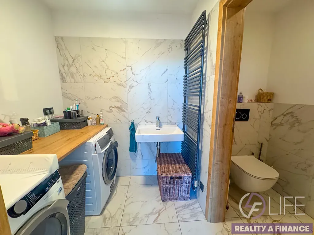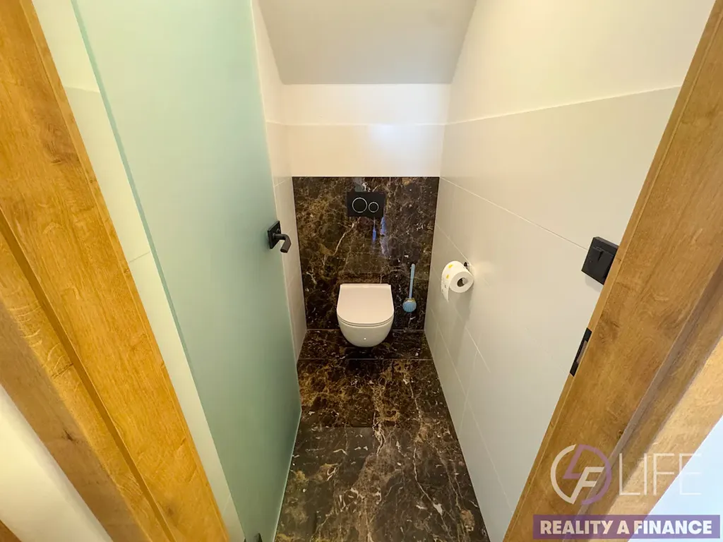 Dispozice domu je navržena s důrazem na každodenní pohodlí i reprezentativní dojem. Přízemí vás přivítá vzdušnou vstupní halou, sociálním zázemím (prádelna, WC) dále plynule vstupuje do otevřeného obytného prostoru s kuchyní a jídelnou – místa, kde se odehrává běžný život i setkávání s rodinou a přáteli. Praktickým doplňkem je elegantní skleněná šatna vyrobená na míru, která nenarušuje prostor, ale naopak podtrhuje celkový styl interiéru.