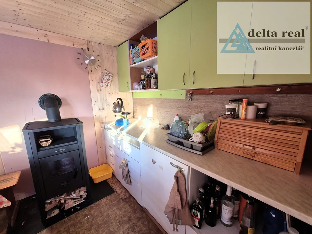 Nabízíme Vám k prodeji zahrádkářskou chatku, která se nachází v zahrádkářské kolonii Osada Vyhlídka. Dispozice chatky: obytná kuchyň s krbovými kamny a ložnice. Na obytnou část chatky navazuje pergola. Pozemek o celkové výměře 288 m2, na kterém stojí chatka, je v majetku města Šumperk. Roční nájemné za pronájem pozemku činí cca 1500 Kč. Na zahrádce je vývod vodovodní přípojky napájený pitnou vodou. V chatce je přivedena elektřina díky solárním panelům umístěným na střeše. Na zahradě se nachází sklad nářadí, udírna, skleník, suchý záchod. Zahrada je oplocena ze 3 stran.