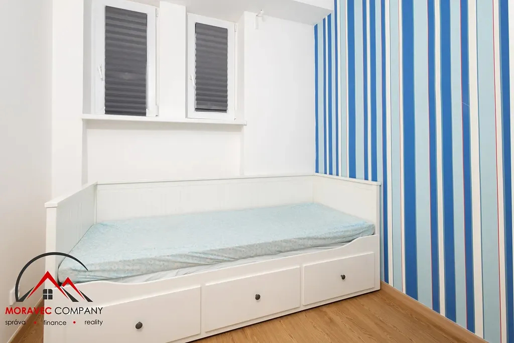 Byt je plně vybaven – nechybí nábytek, spotřebiče, nádobí. Stačí si jen přinést osobní věci a můžete bydlet!
