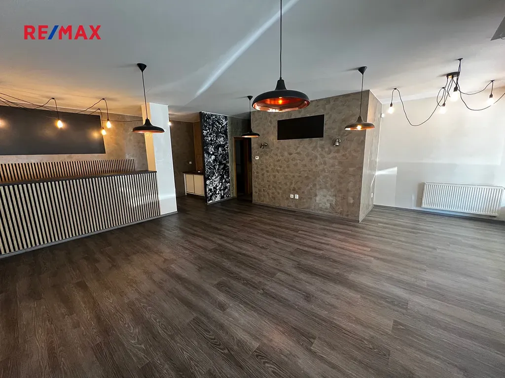 Jedná se o jeden společný obchodní prostor oddělen pultem, doplněn o technické zázemí - sociální zařízení 3x, včetně úklidové místnosti.