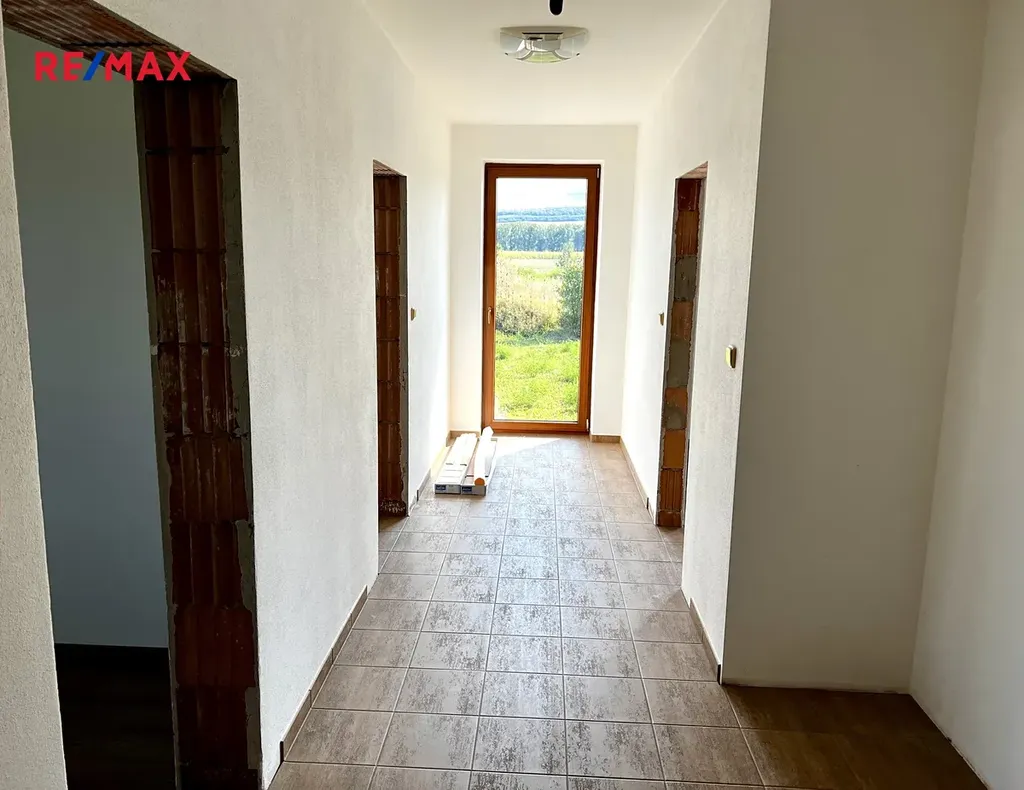 Na chodbách je připraveno praktické místo pro vestavěné skříně, předsíňovou stěnu.