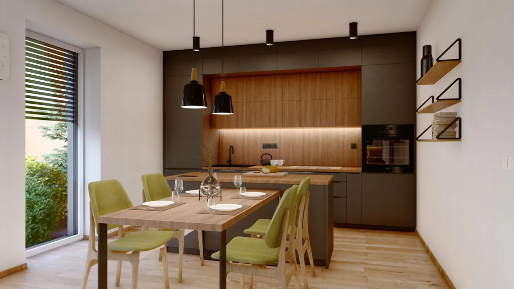 Dispozice: 1.NP – vstupní předsíň (4,94 m2), samostatné WC (1,94 m2), obývací pokoj s kuchyňským koutem (21,98m2), z obýváku je vstup na terasu o výměře 10,97 m2, 2x samostatný pokoj/ ložnice (13,96 m2, 10,7 m2), koupelna s WC ?(7,21 m2).