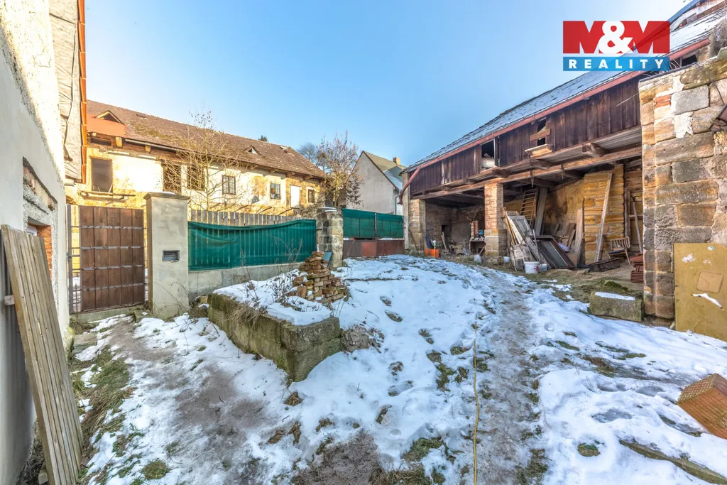 Součástí nemovitosti je také stodola se zastavěnou plochou 60 m² a podkrovím, která nabízí možnost vybudování venkovního posezení, dílny nebo další obytné části. K domu náleží uzavřený dvůr o velikosti 150 m² a další zahrada o výměře 150 m², vzdálená 200 m od domu, je zahrnuta v ceně.